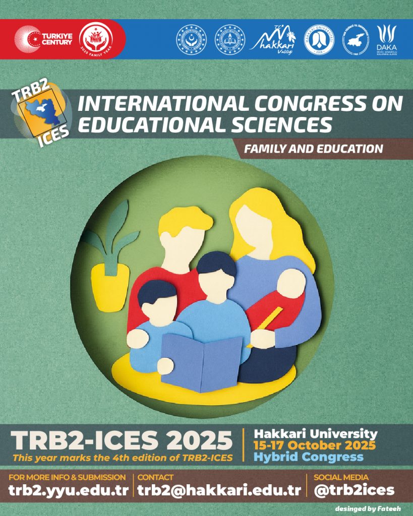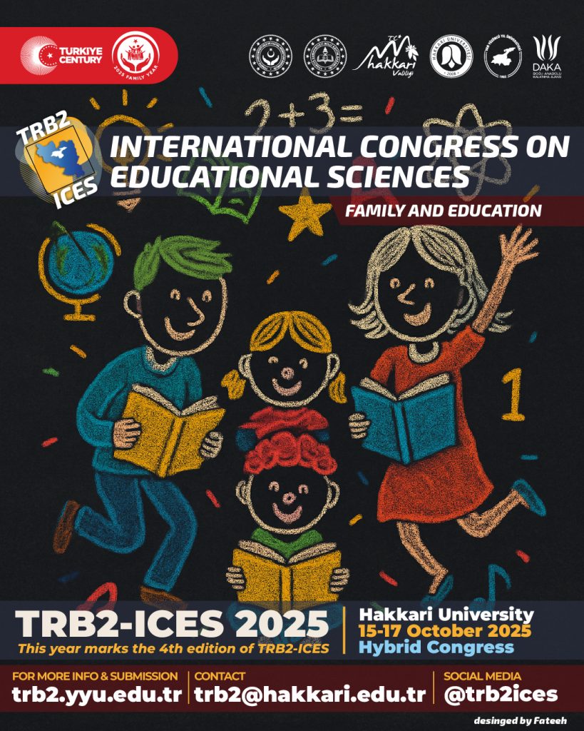TRB2 Uluslararası Eğitim Bilimleri Kongresi-IV (TRB2-ICES-2025), 15–17 Ekim 2025 tarihlerinde Türkiye’de Hakkâri Üniversitesi’nde gerçekleştirilecek prestijli bir konferanstır. Kongre, “Aile ve Eğitim” ana teması çerçevesinde eğitim bilimlerindeki güncel eğilimleri ve zorlukları keşfetmek üzere dünya genelindeki araştırmacıları, akademisyenleri, uygulayıcıları ve öğrencileri davet etmektedir.